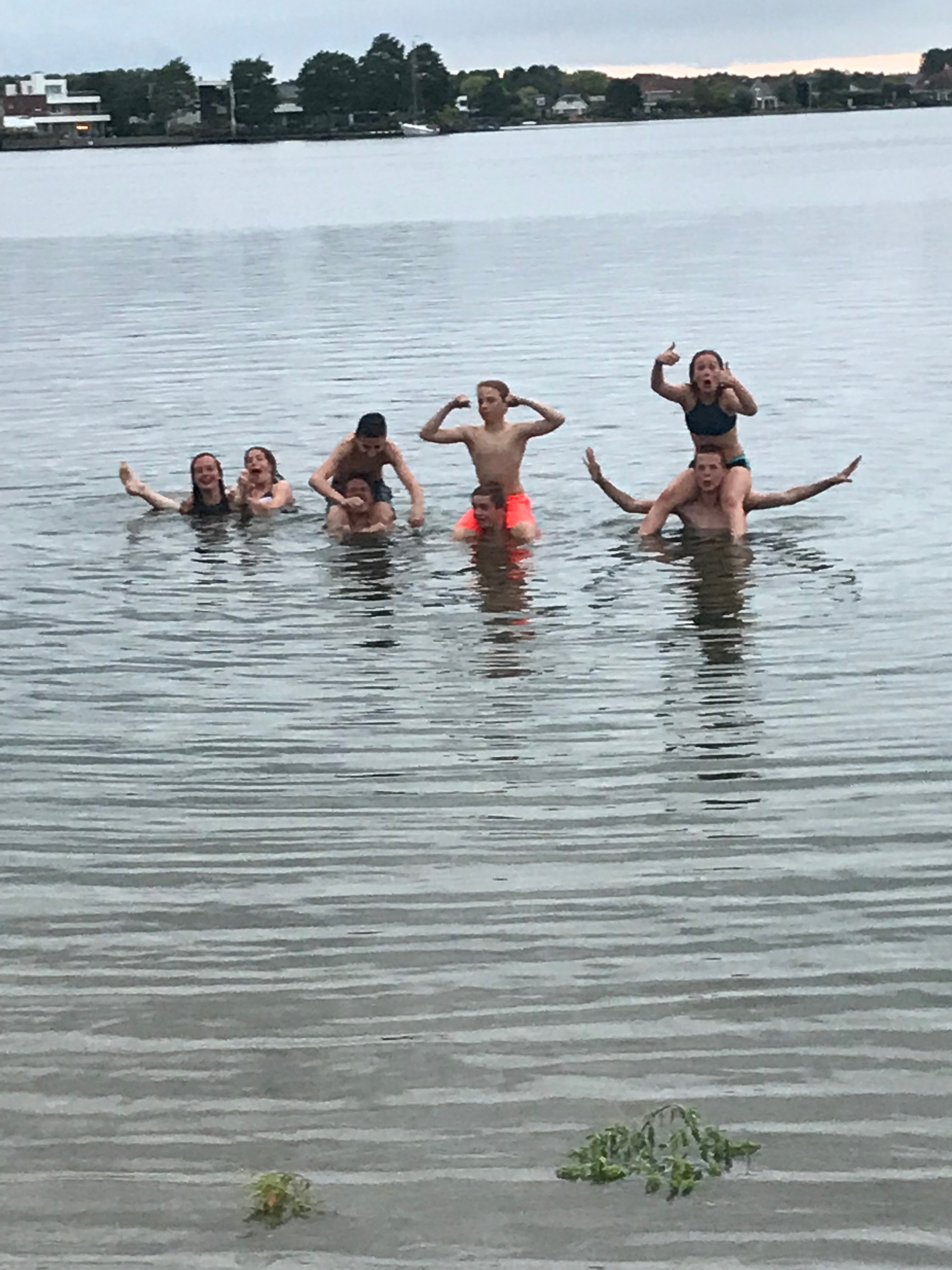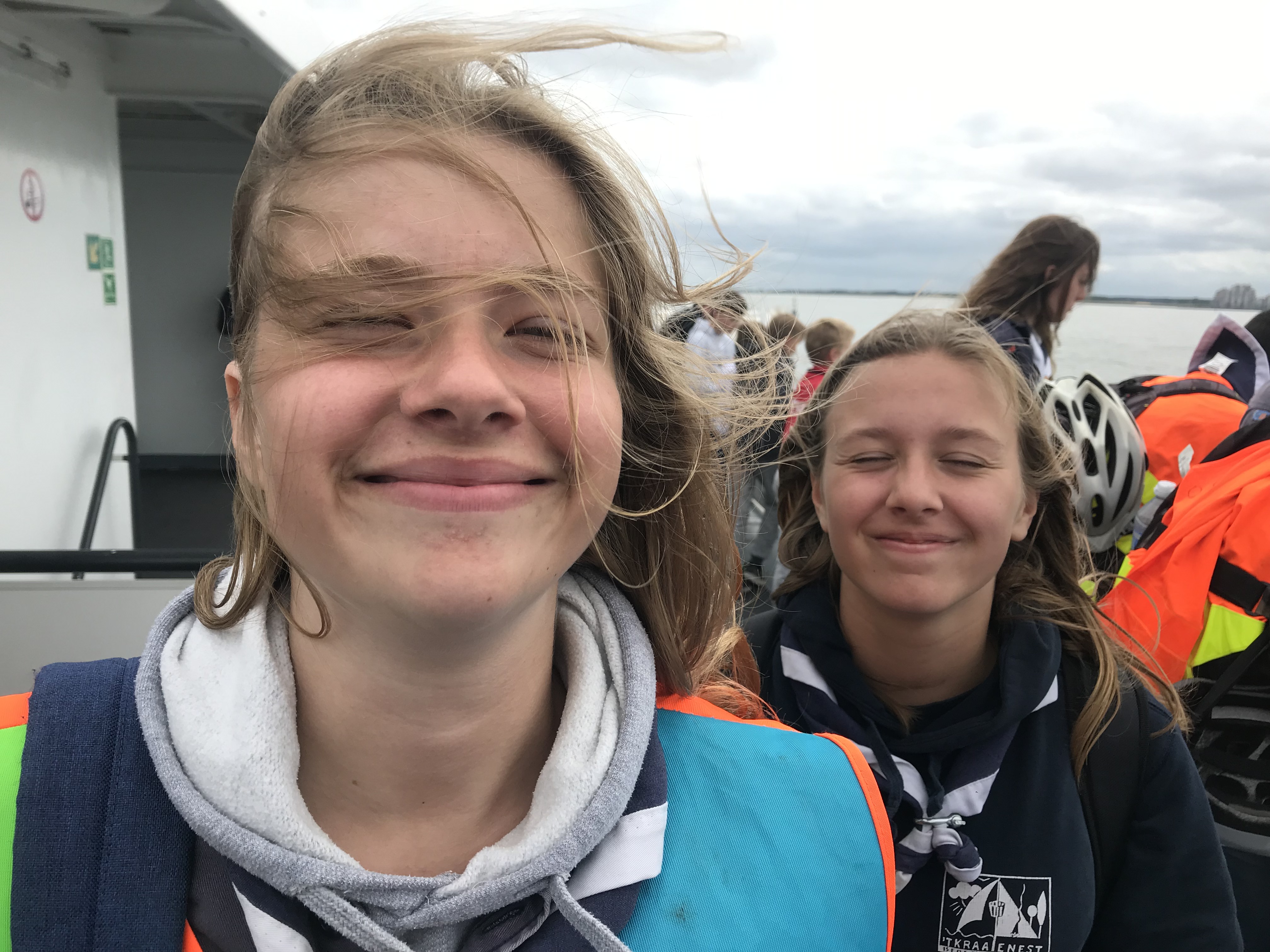 Onze rit begon ook aan Koksijde, maar in Lichtervelde moesten we afscheid nemen van de welpen. In Knokke begon het echte avontuur. We namen de fiets bij de hand en begonnen aan de tocht, maar namen al snel een pauze. Tegen dat we goed en wel vertrokken waren, was het terug tijd voor een korte pauze. Het uitzicht tijdens het fietsen was heel mooi. We kwamen koeien, schapen en geiten tegen, heel leuk! We hebben de ferry genomen, wat heel spannend was. Eenmaal dat we aan het kampgebouw toekwamen, zagen we dat de welpen al goed bezig waren met alles uitladen. Na het uitladen namen we een korte pauze tot het lekkere eten! Nu is het tijd om te gaan slapen, tot morgen!