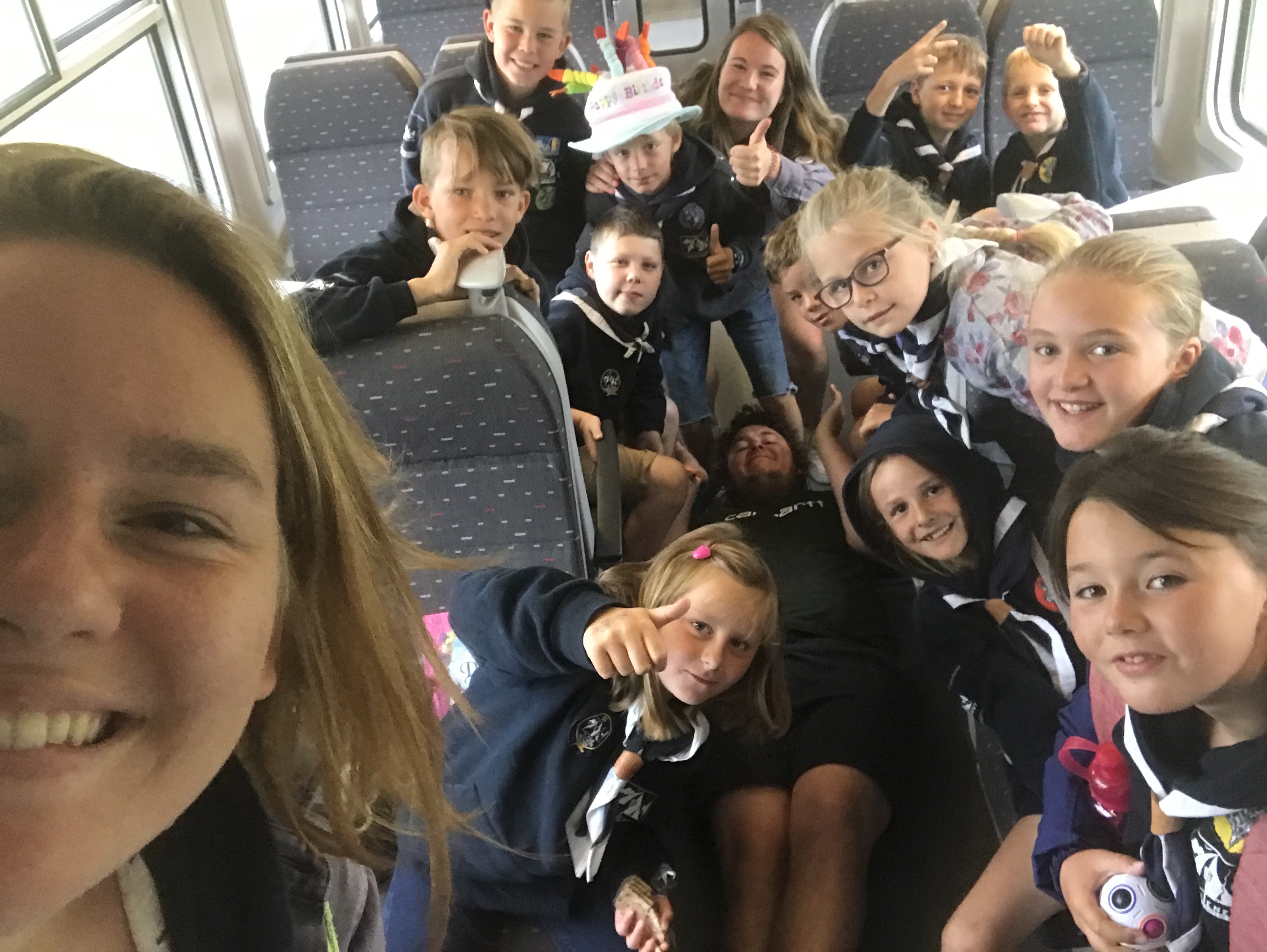 Het begon allemaal aan het station van Koksijde. We zwaaiden onze mama’s en papa’s uit en onze reis begon. We stapten op de trein richting Goes. Het was veel overstappen, maar dat is ons perfect gelukt! We hebben goed geluisterd naar onze leiding. We vulden de tijd met strips lezen en gezelschapsspelletjes spelen. Na een aantal uurtjes bereikten we onze bestemming: de kampplaats in Goes! Bij het aankomst zijn we al direct in actie geschoten. We hebben onze kamer klaargezet en mochten buiten wat vrij spelen. We hebben lekkere spaghetti gegeten. Pjotr heeft een leuke verrassing gekregen van zijn leiding. Nu kruipen we vroeg in ons bedje want we zijn moe! Slaapwel!