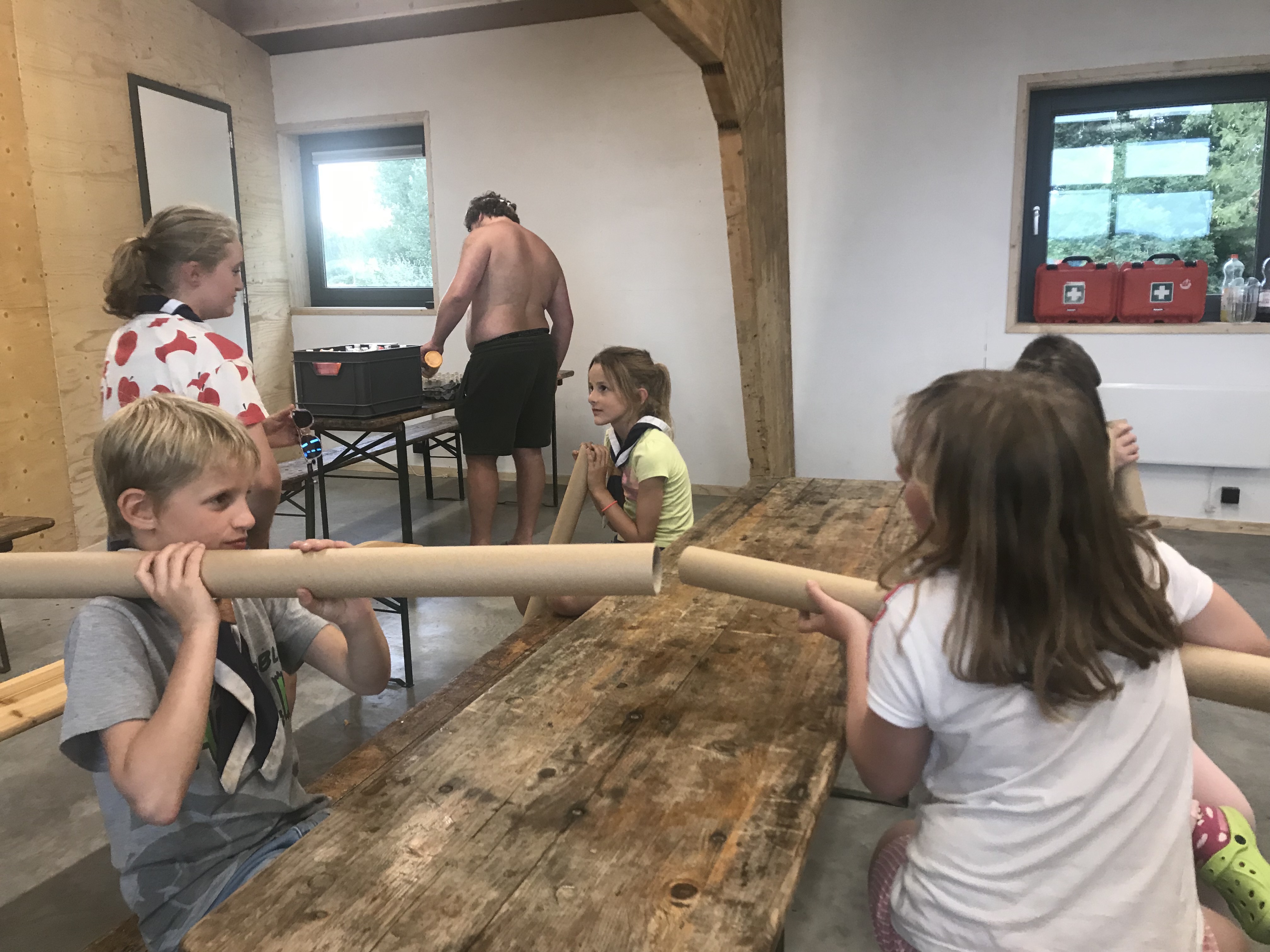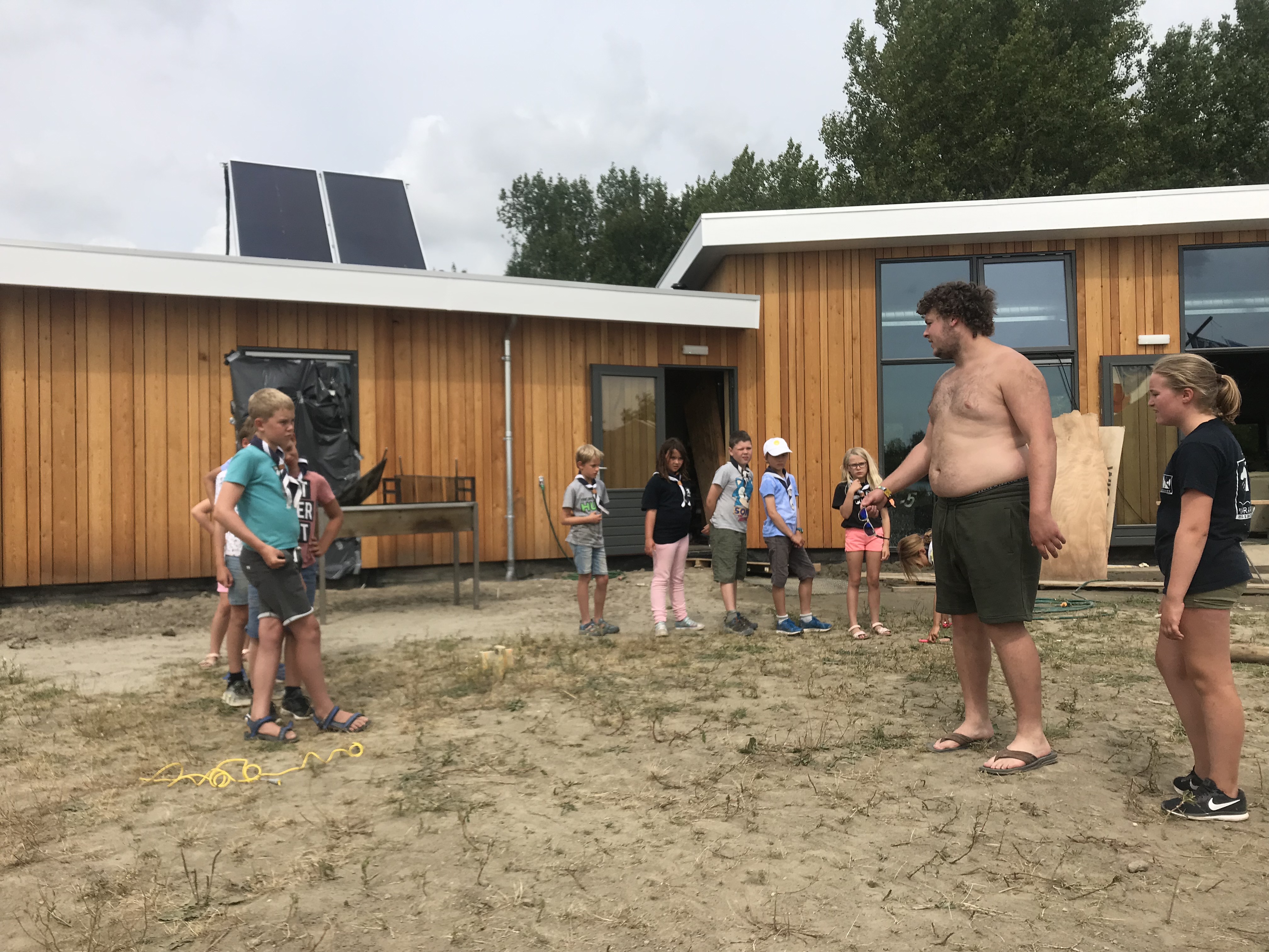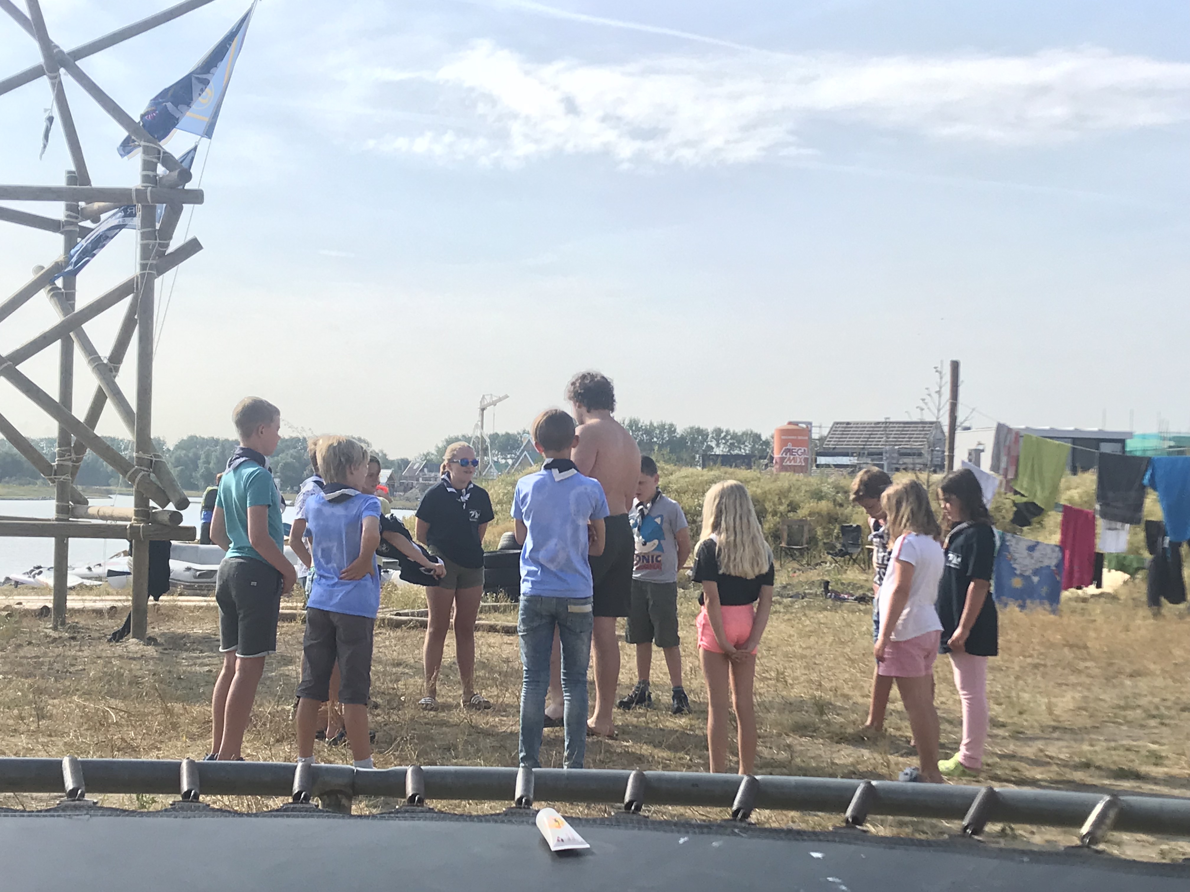 Deze ochtend hebben we een heel intensief sportspel gespeeld van Rikki-Tikki-Tavi. We moesten in 2 teams enkele opdrachten uitvoeren: uit het meer haalden we water met een bekertje om flessen te vullen, springtouwen, touwtrekken. Het was heel leuk!