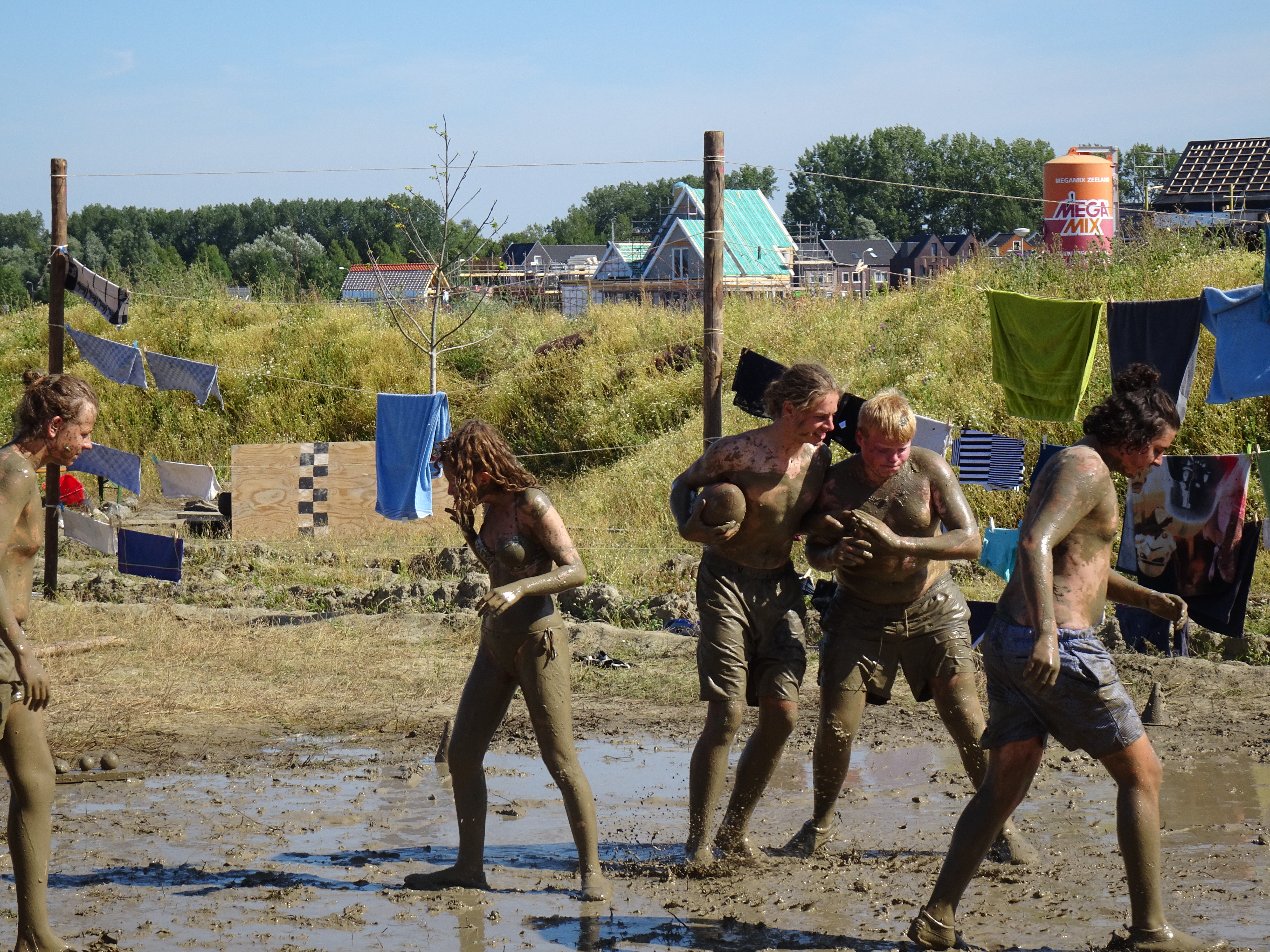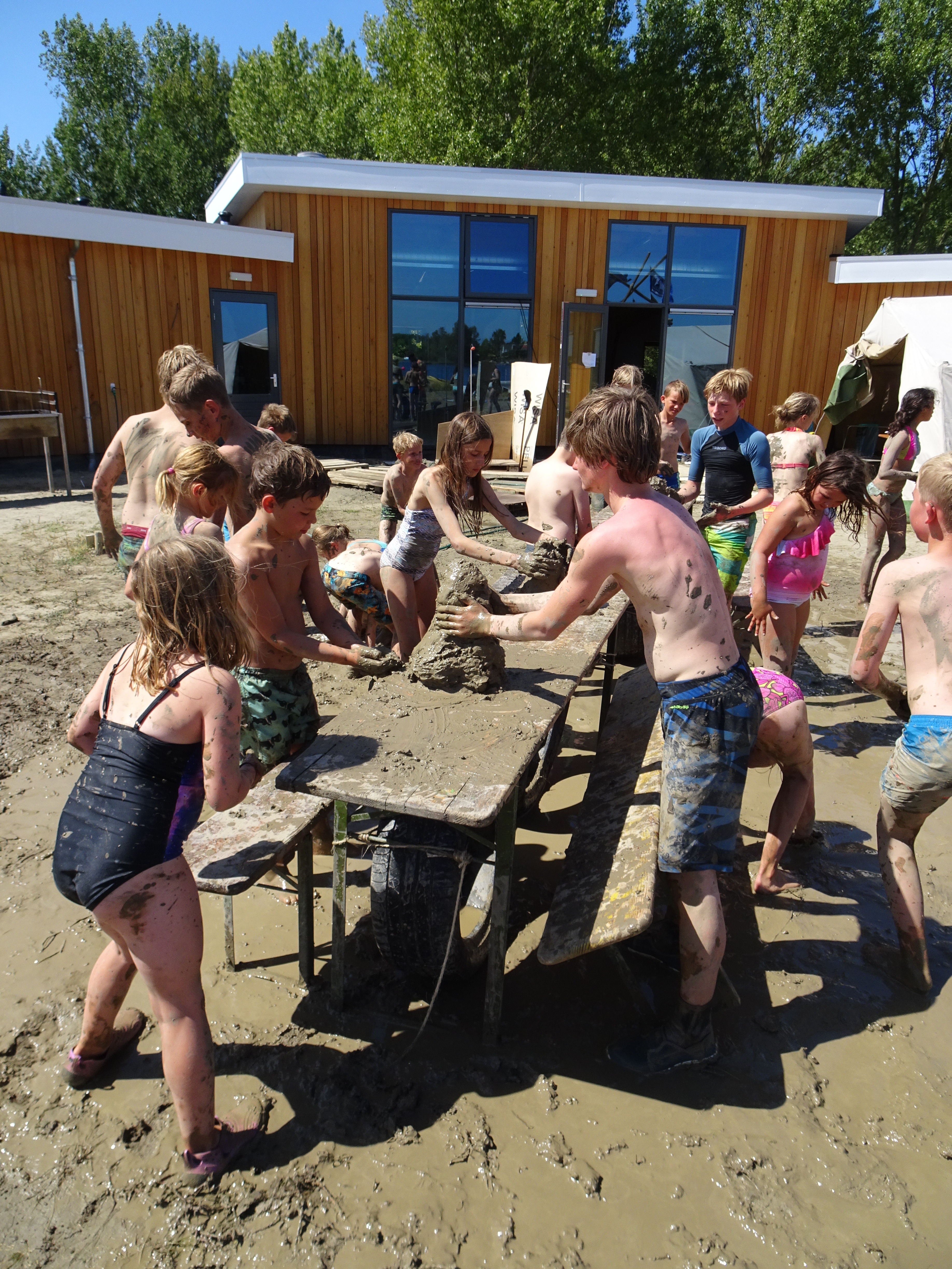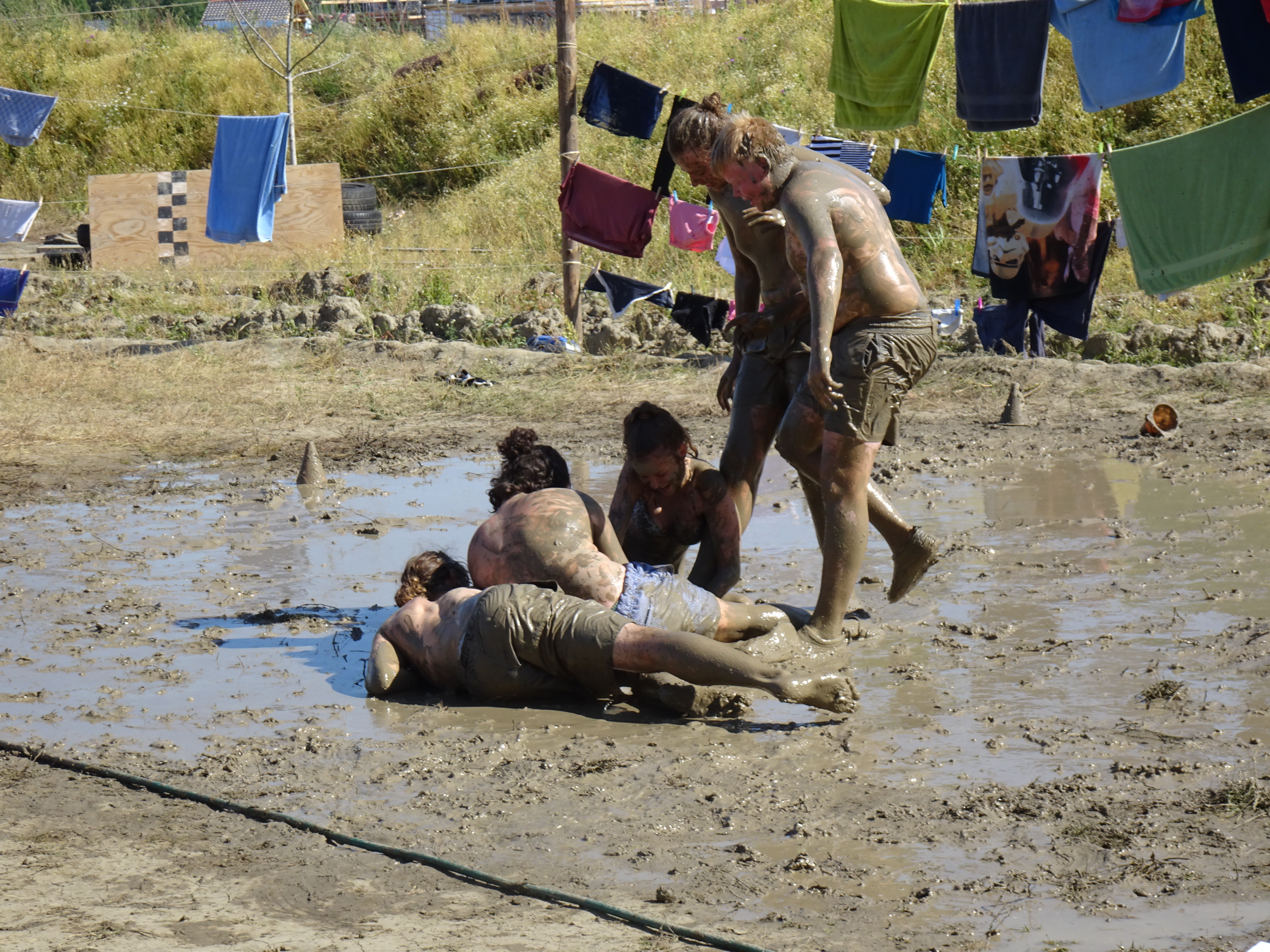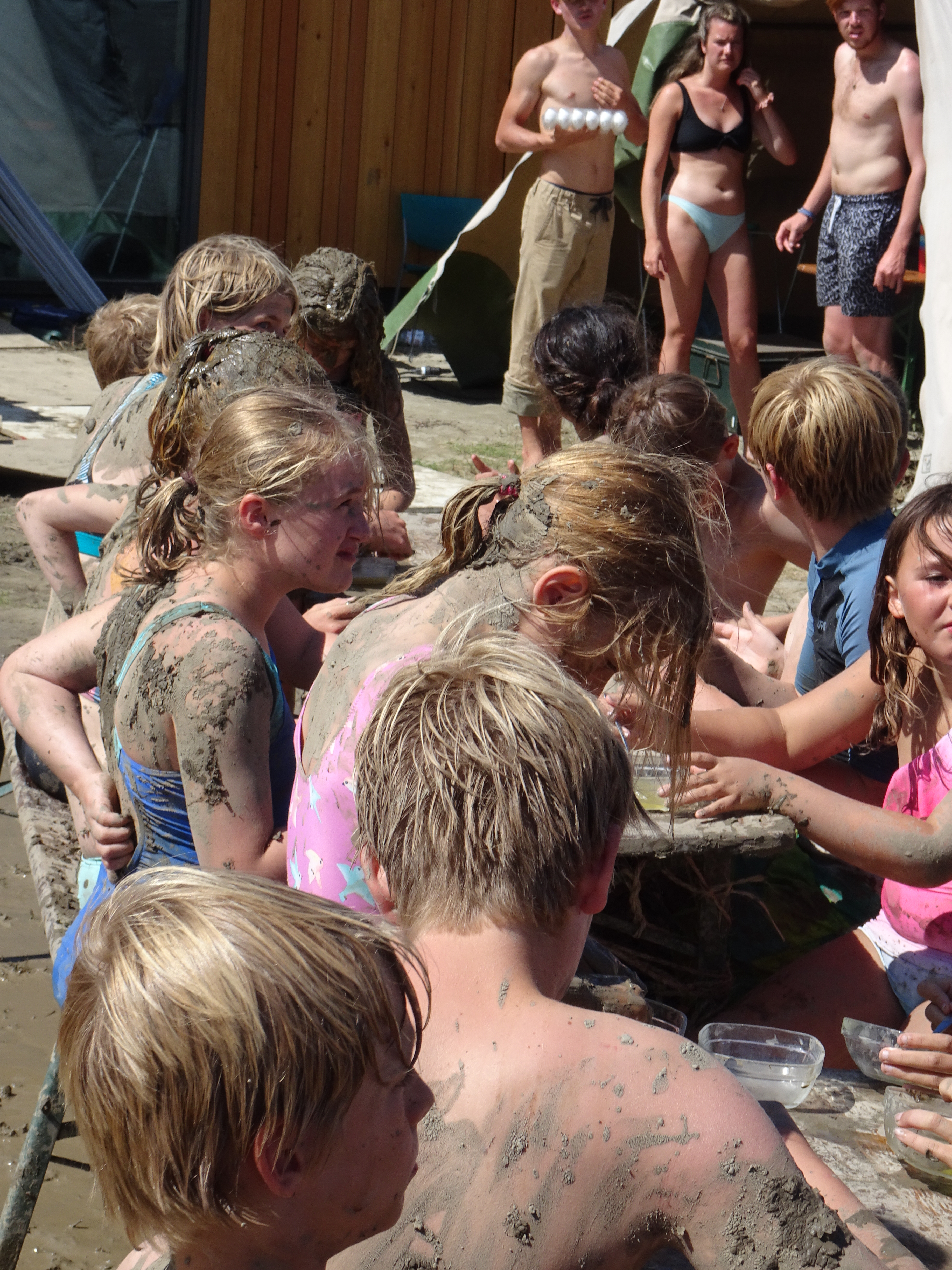Wij hebben vanmiddag enkele zelfgemaakte spellen gespeeld van de seniors: rugby in de modder, waterspelletjes, enz.