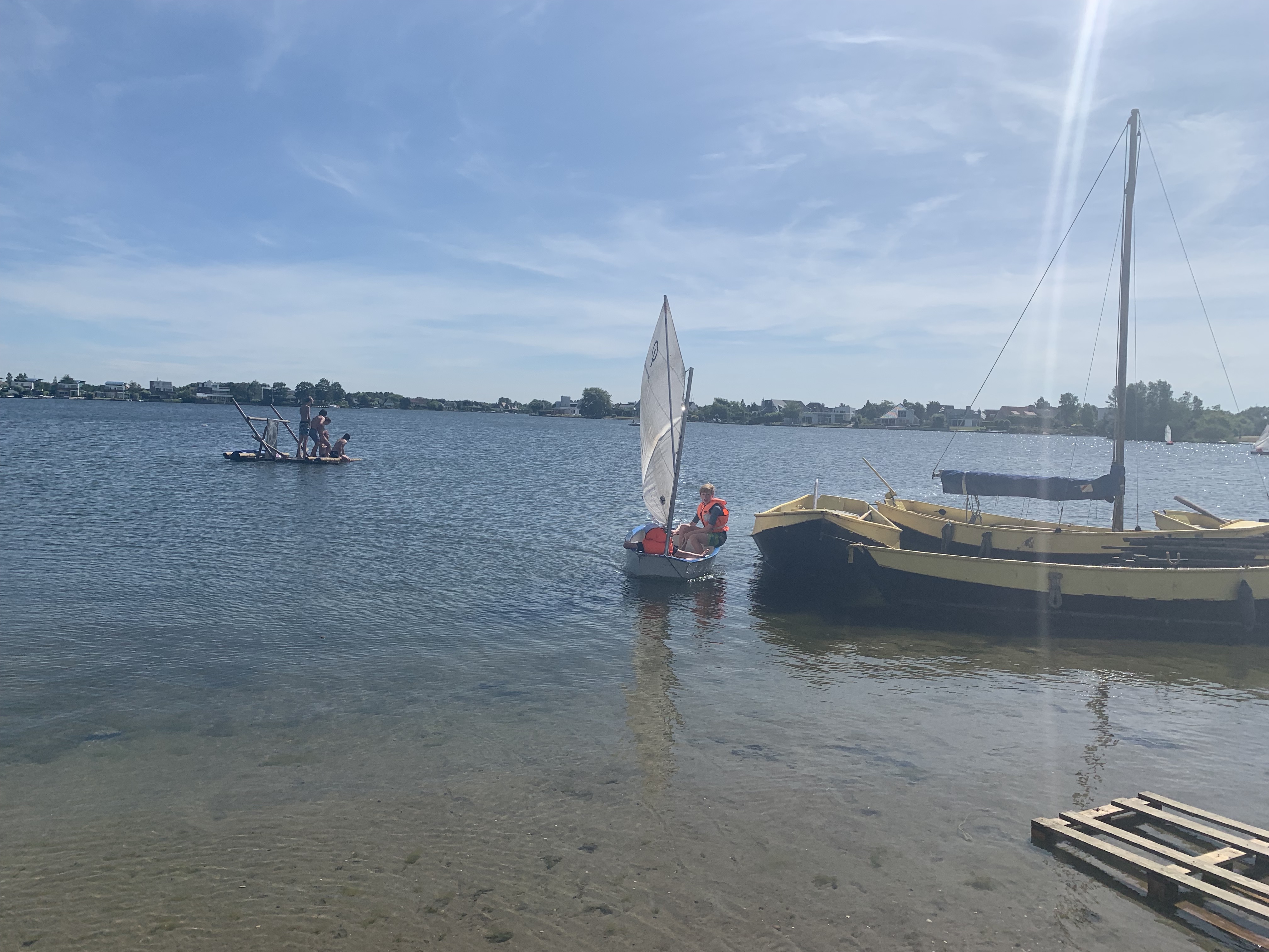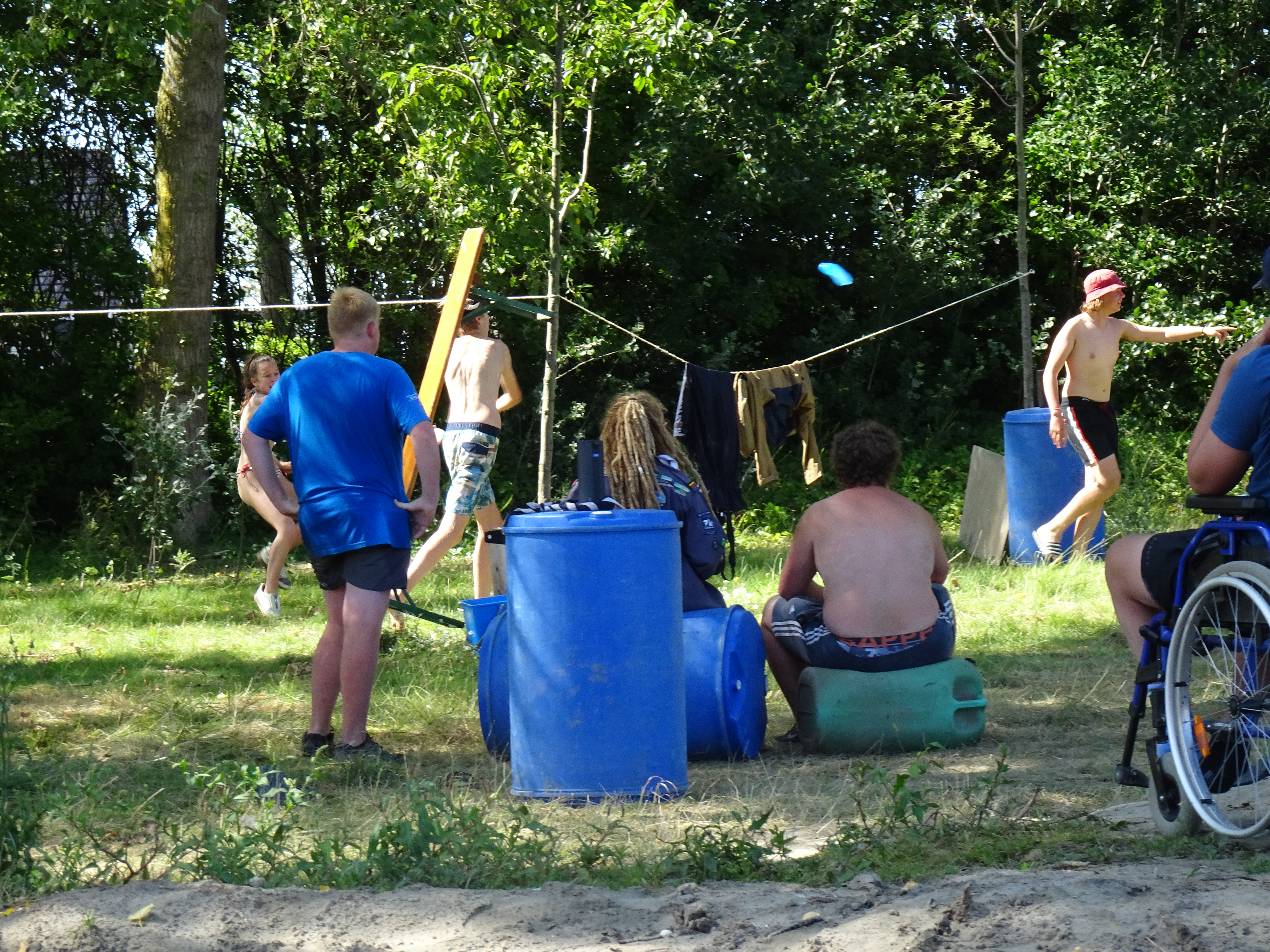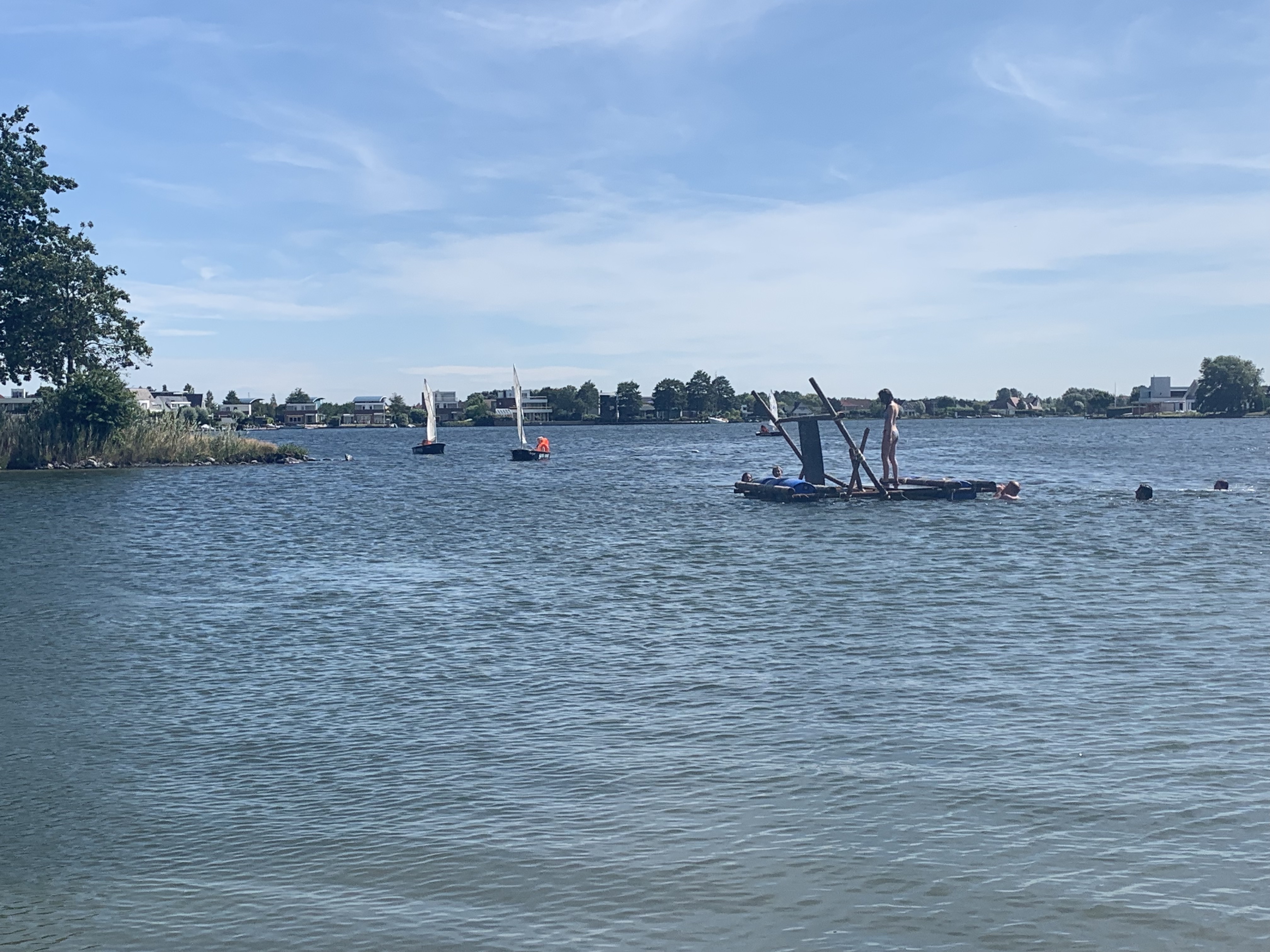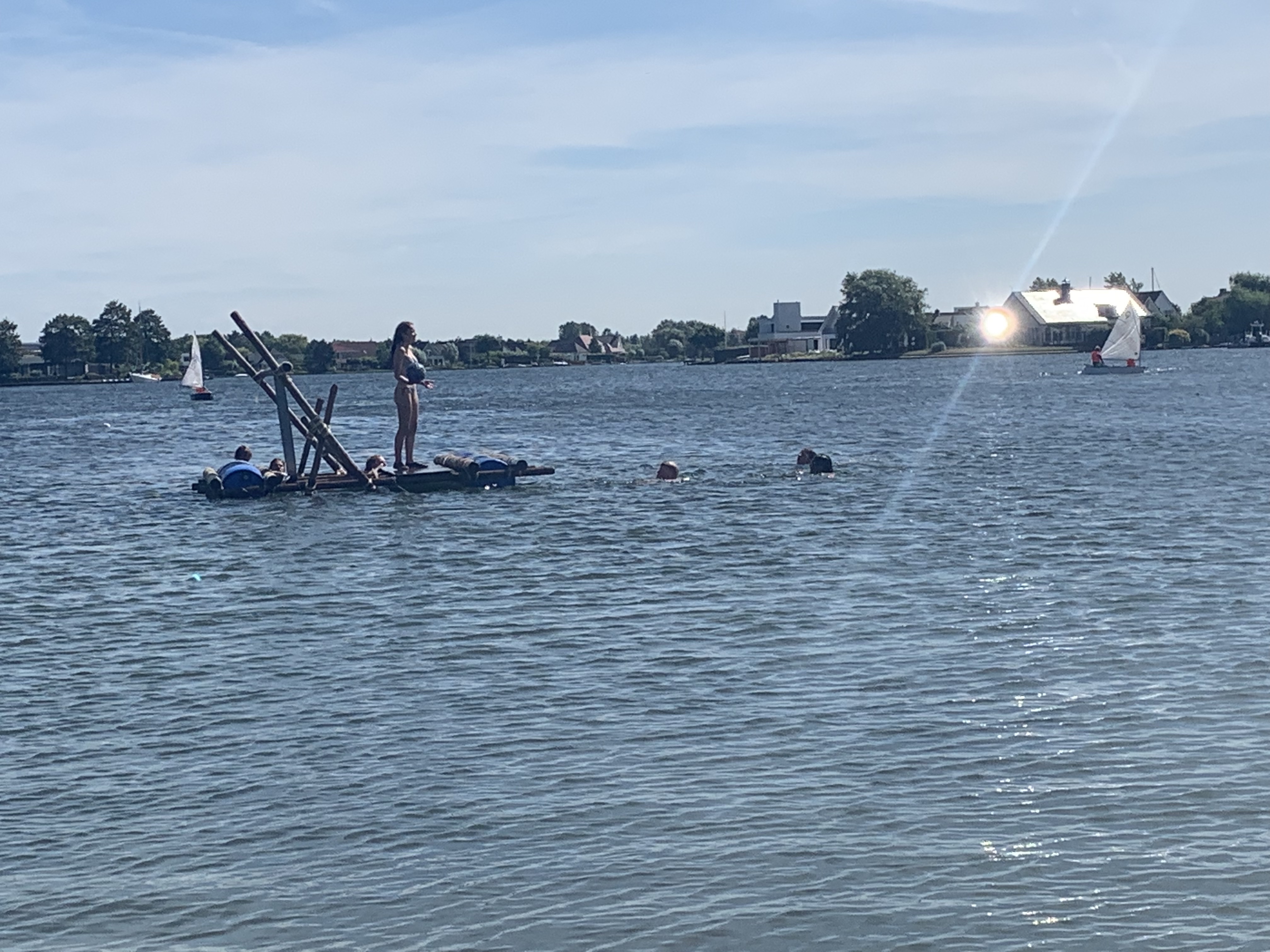 Deze morgen hebben wij waterpolo gespeeld op ons zelfgemaakt vlot. Vermoeiend, maar wel heel leuk!