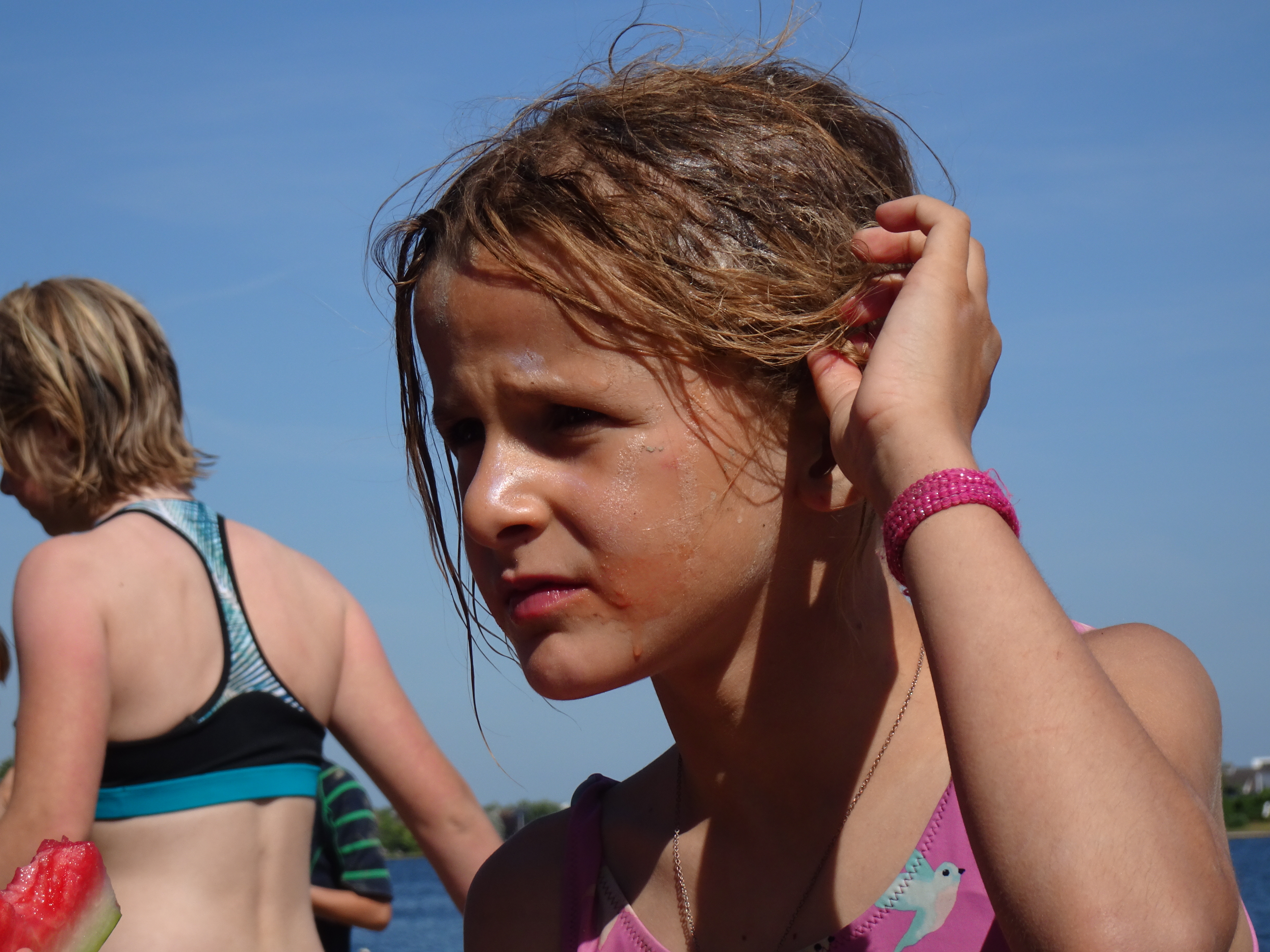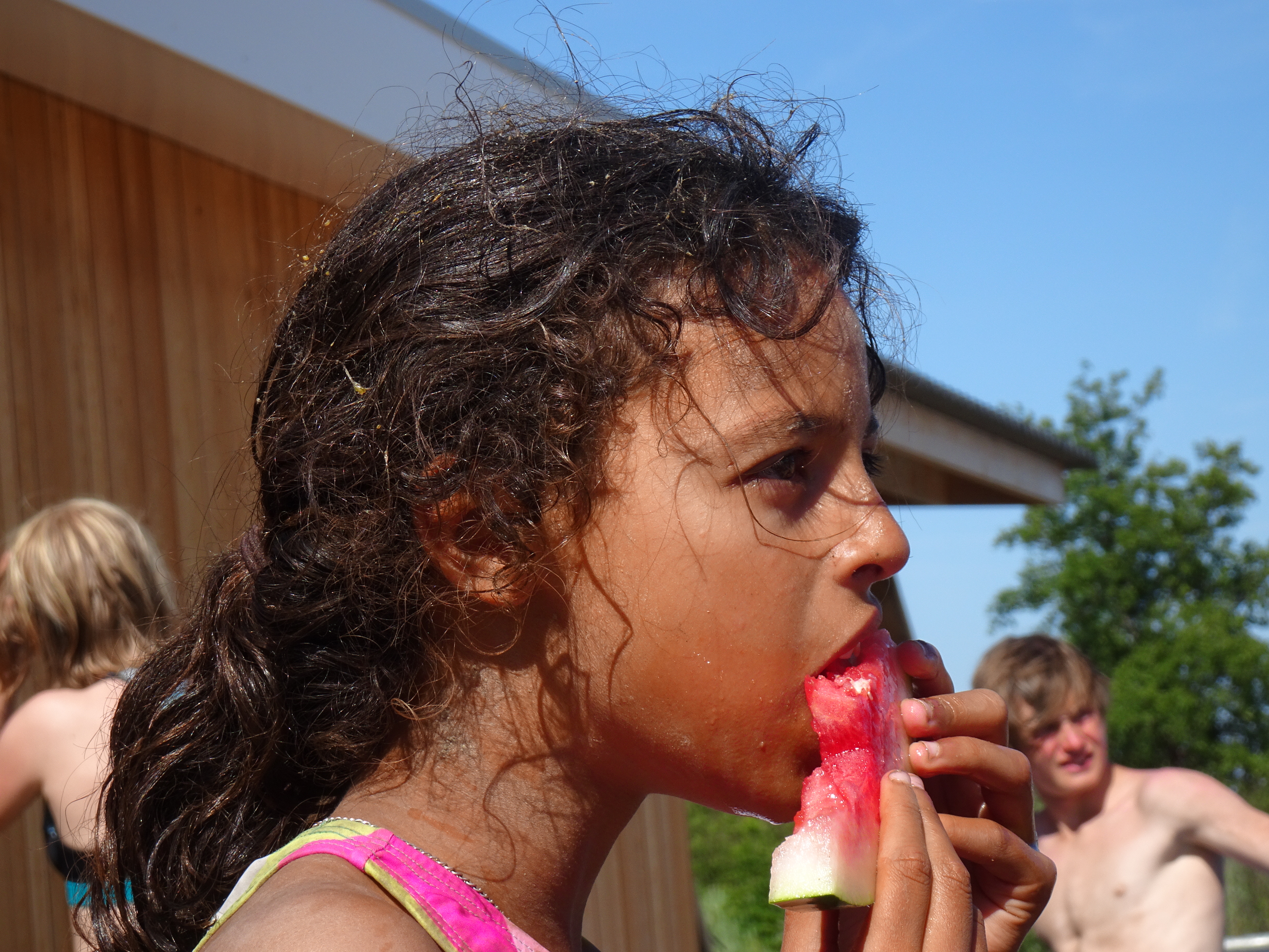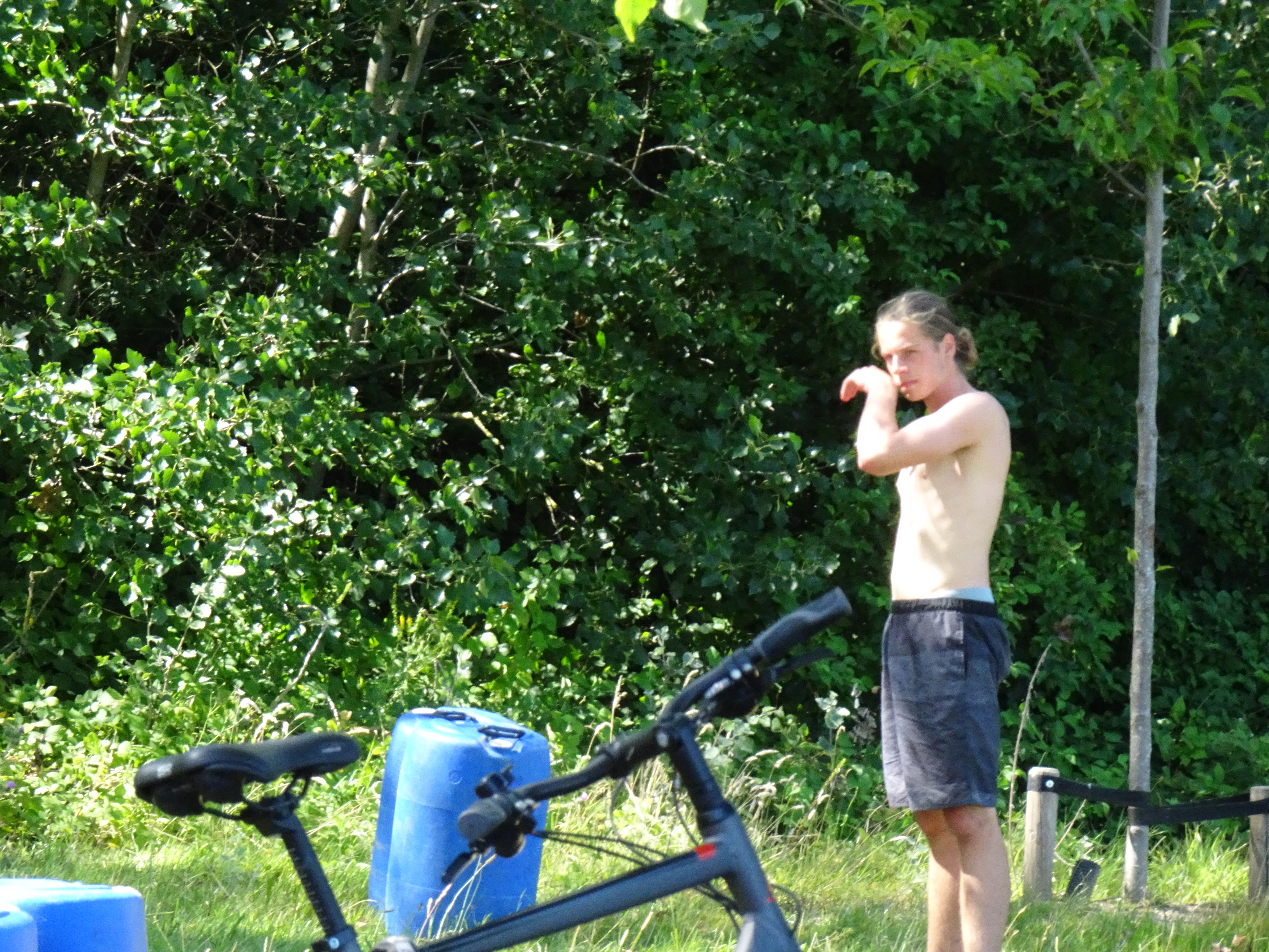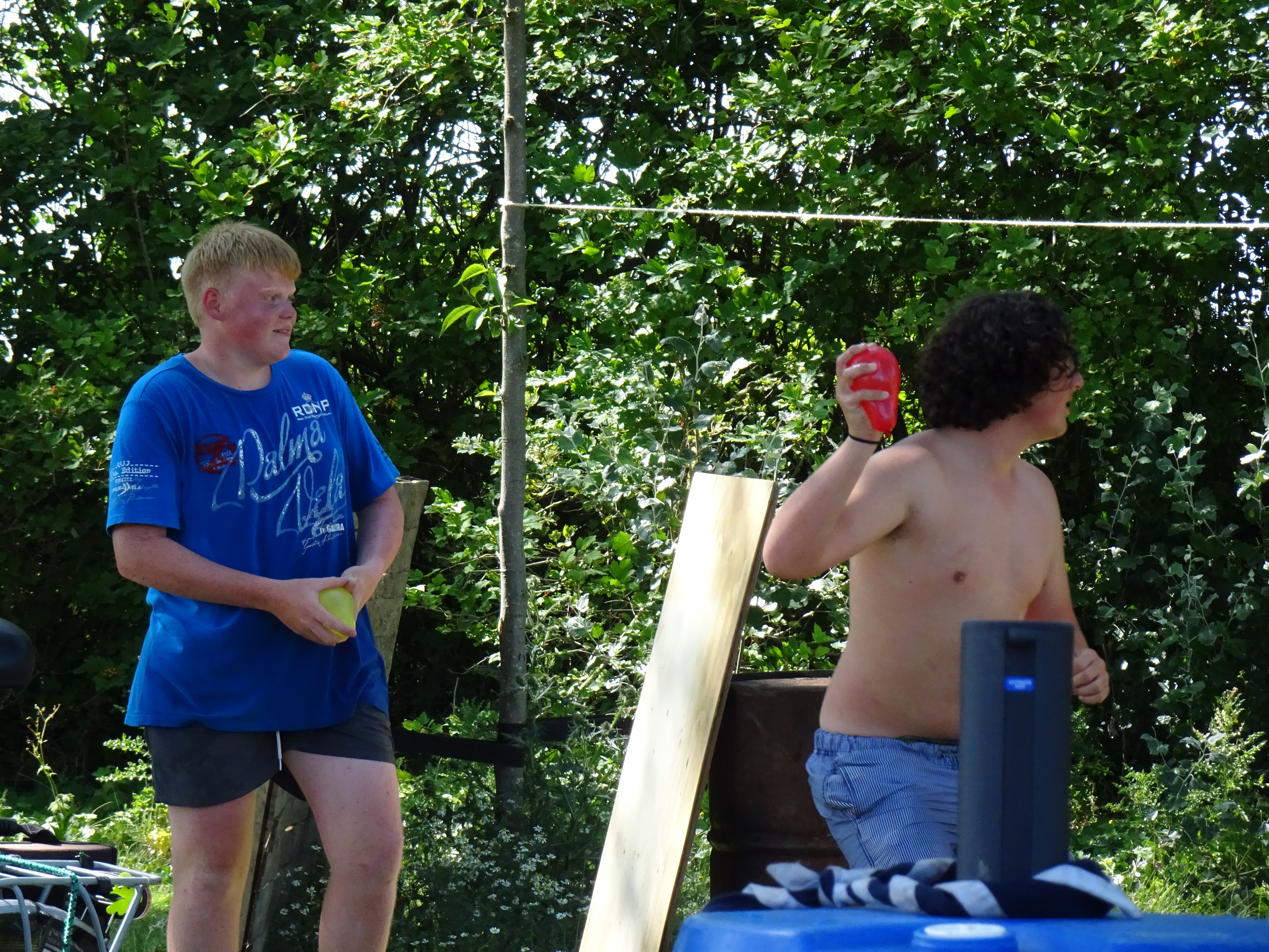Deze morgen hebben wij waterpolo gespeeld op ons zelfgemaakt vlot. Vermoeiend, maar wel heel leuk!