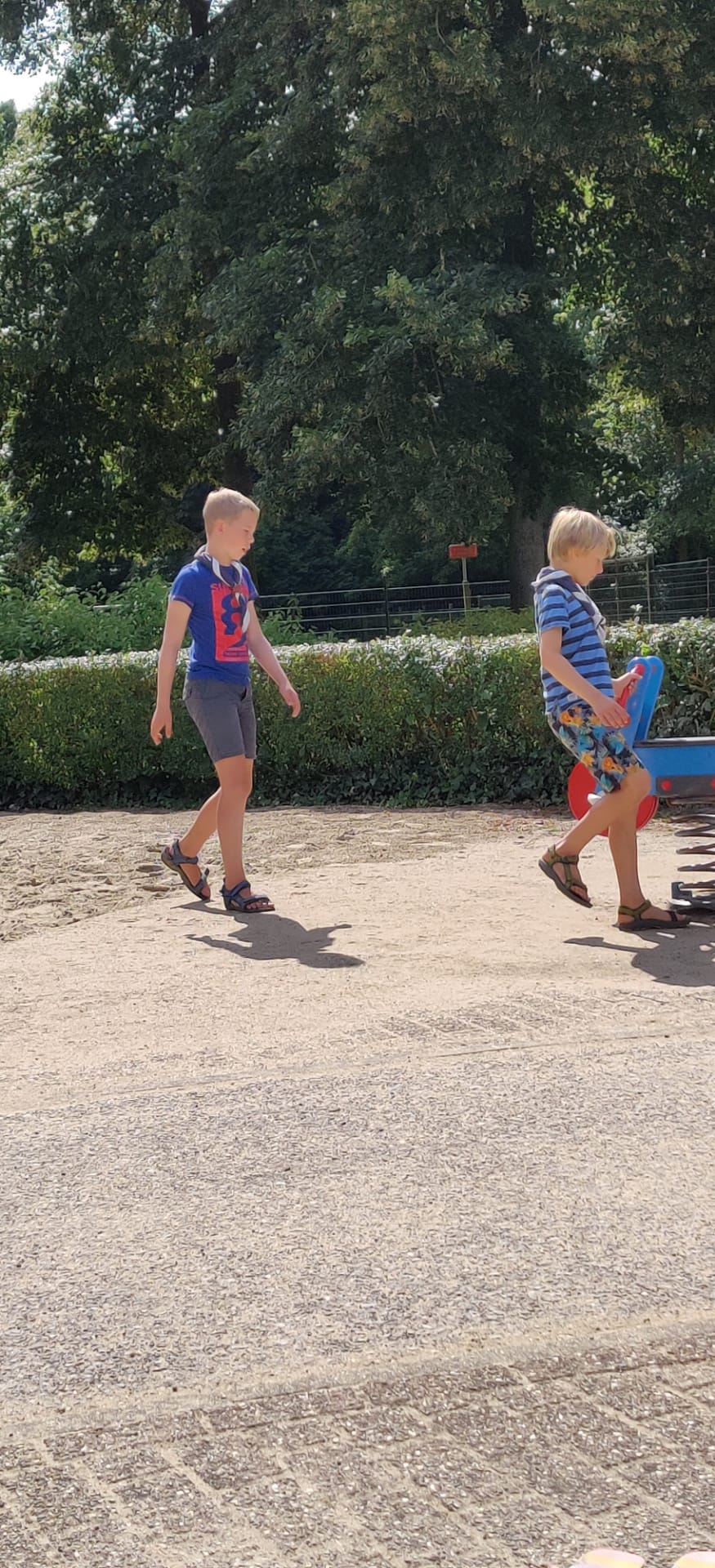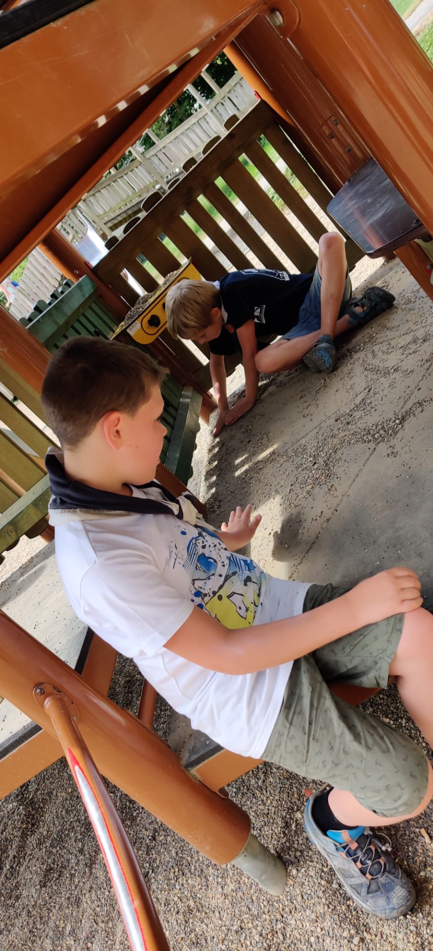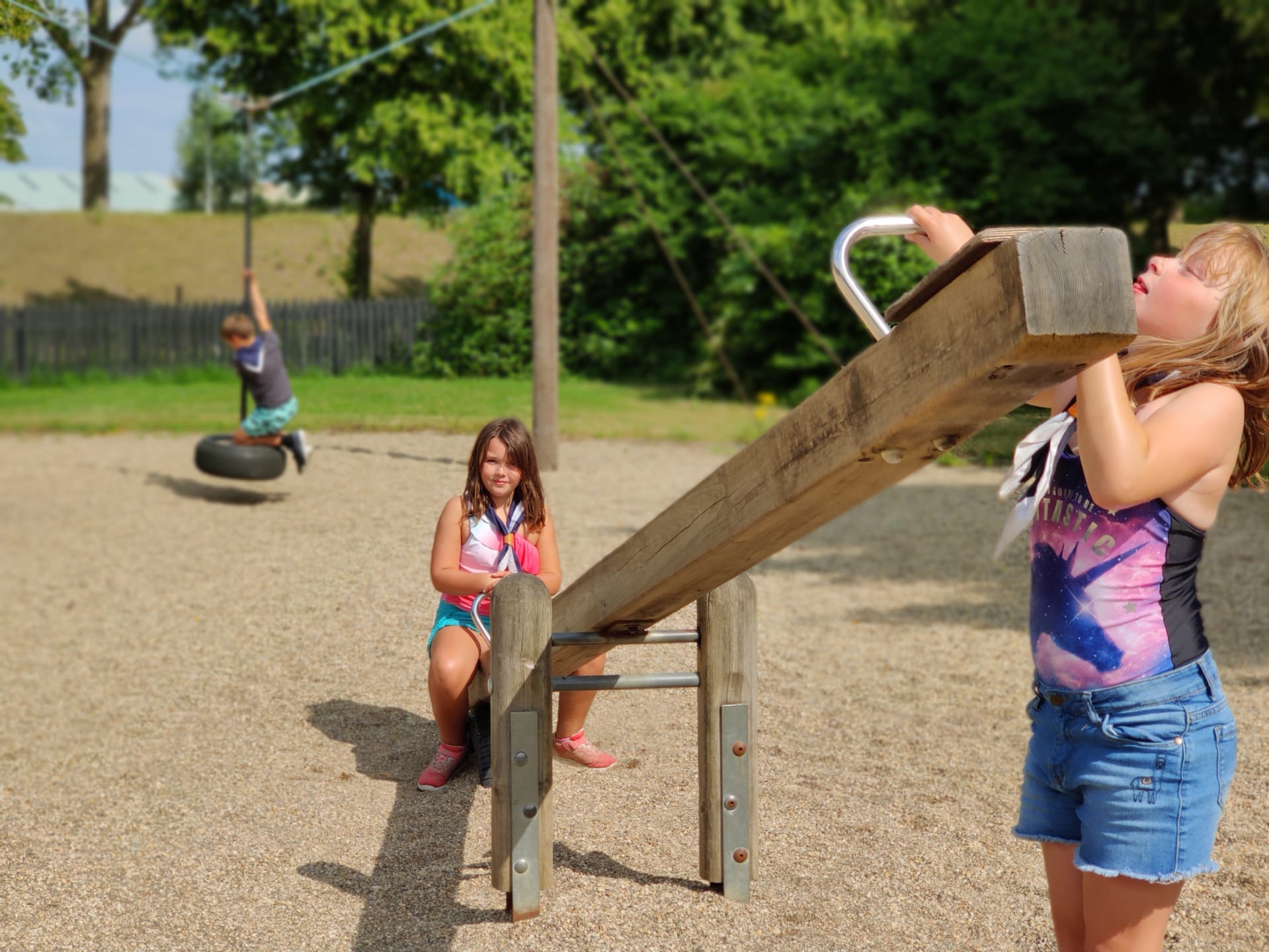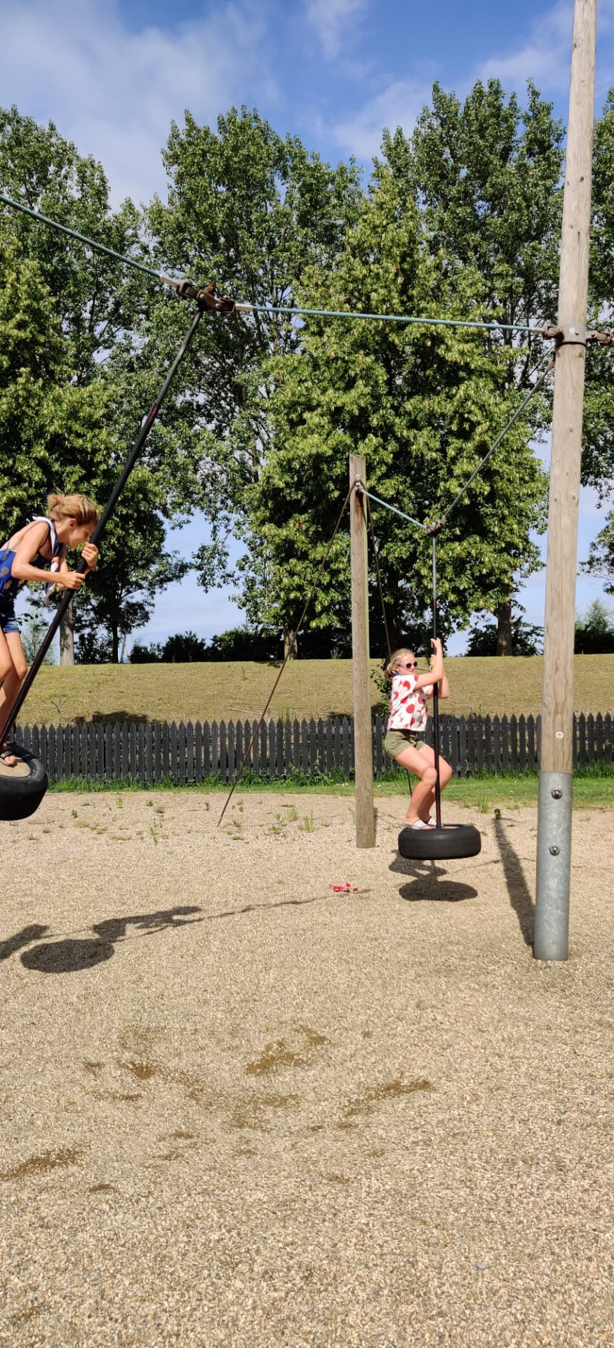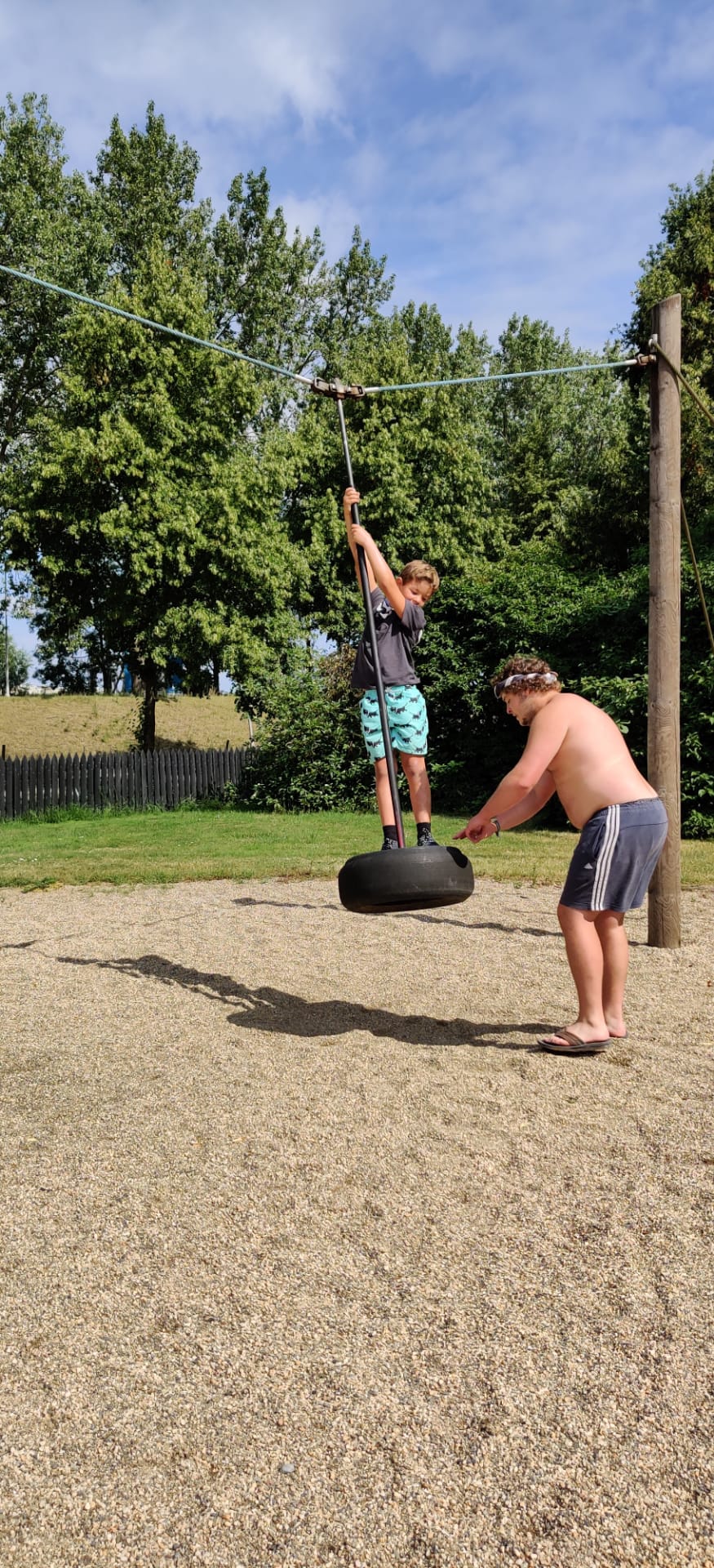 Deze morgen zijn we naar een speeltuin geweest op 10 minuutjes van het kampterrein. We konden daar schommelen, klimmen, op een katrol zitten, enz. Het was al heel warm, maar we hebben ons goed geamuseerd.
