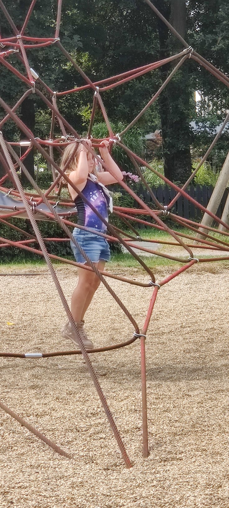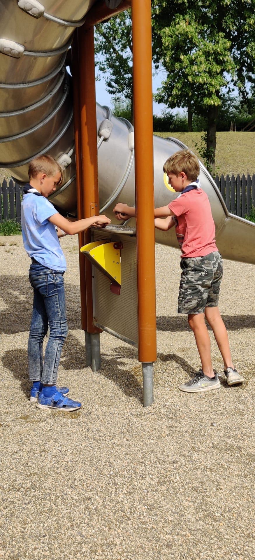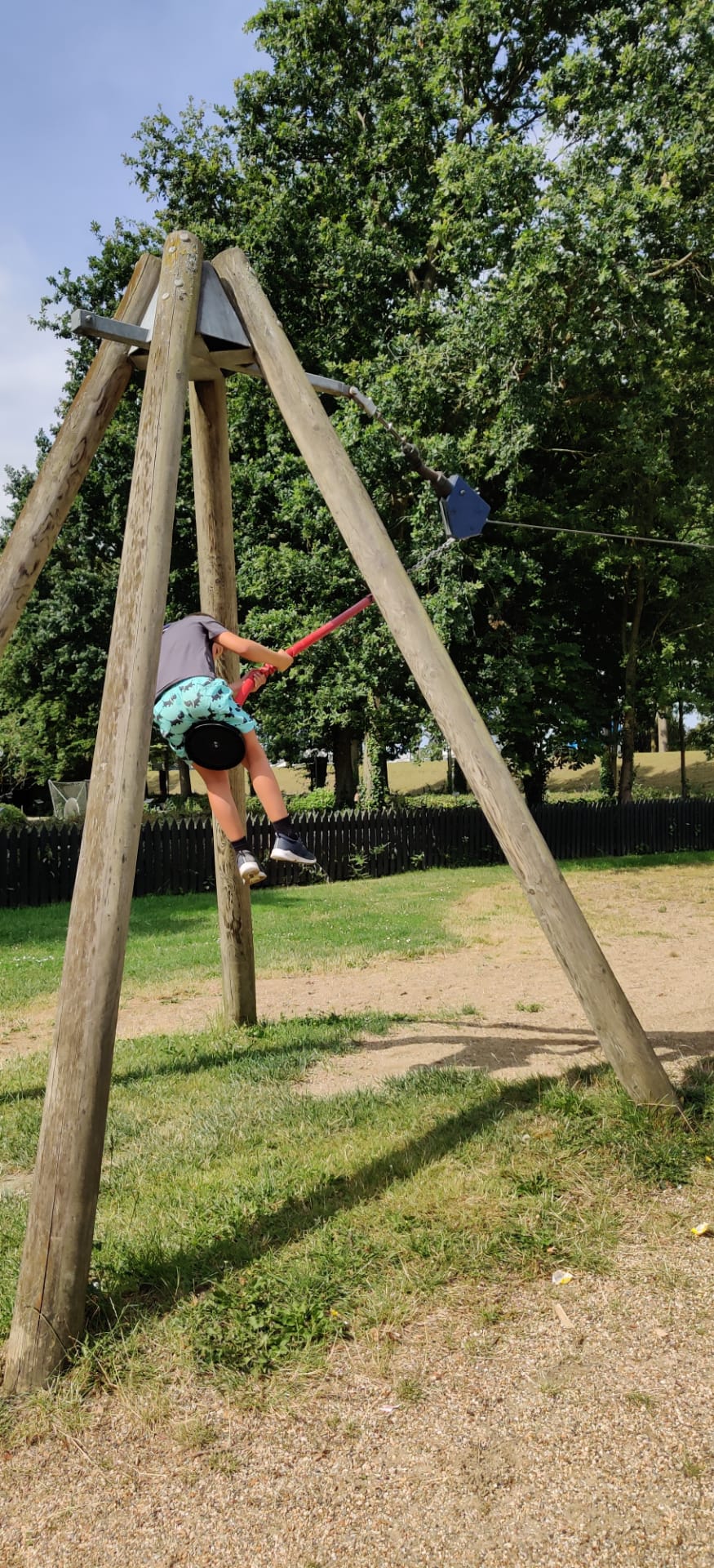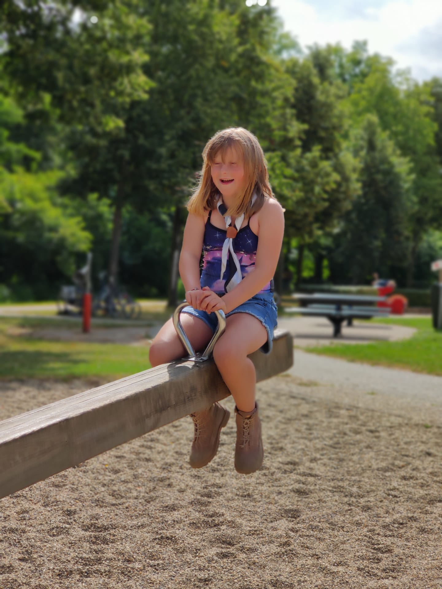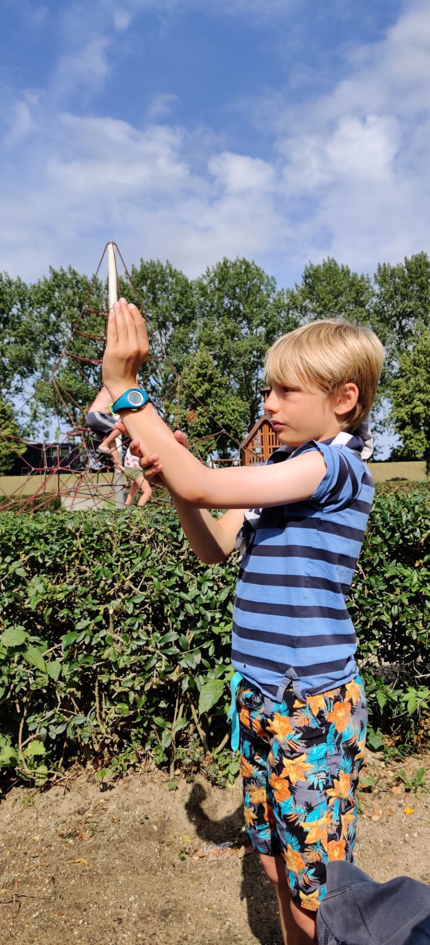 Deze morgen zijn we naar een speeltuin geweest op 10 minuutjes van het kampterrein. We konden daar schommelen, klimmen, op een katrol zitten, enz. Het was al heel warm, maar we hebben ons goed geamuseerd.