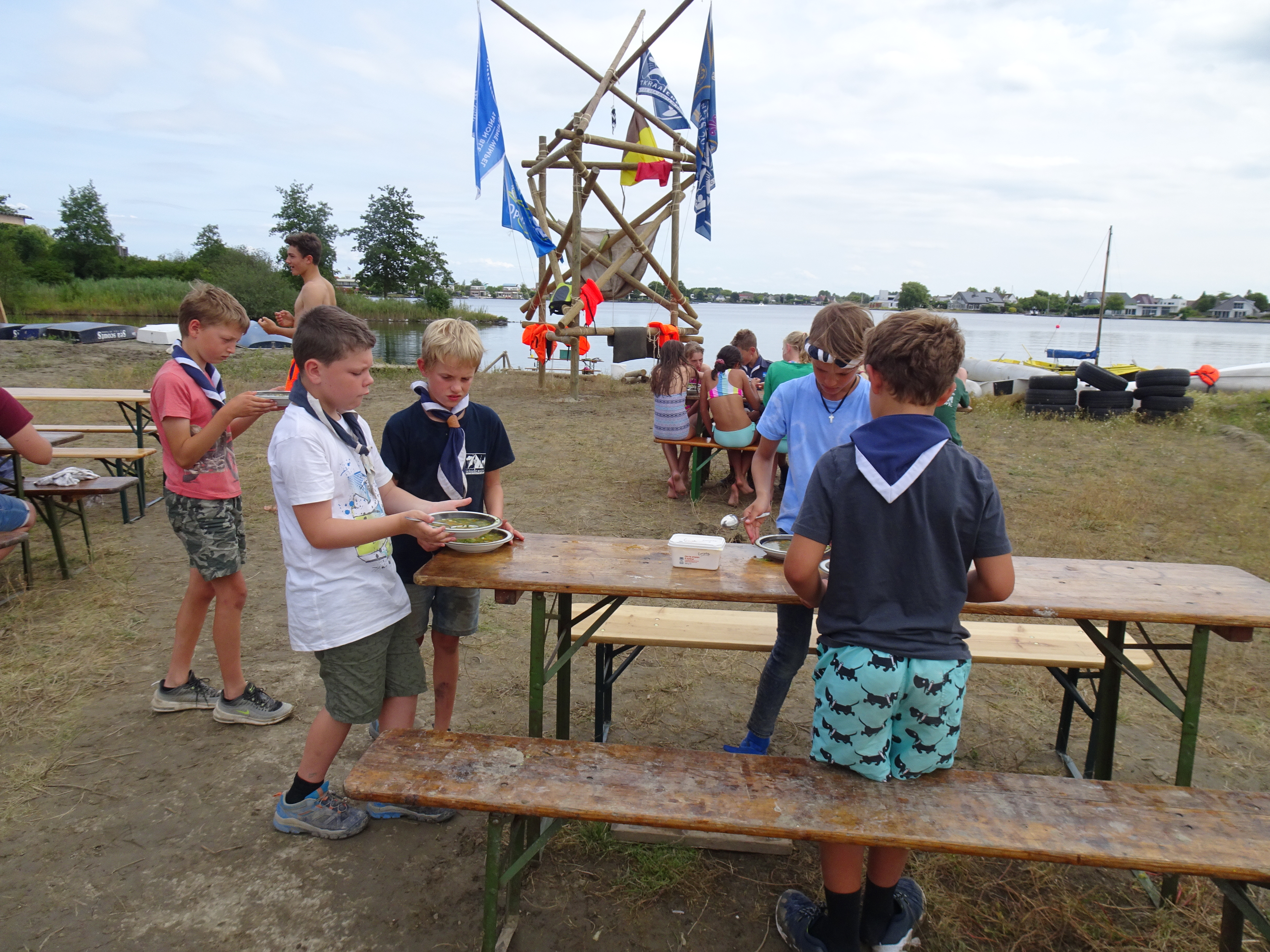 Vanmiddag hebben wij gekajakt! Voor de meeste welpen was dit hun eerste ervaring op het water. We hebben tikkertje gespeeld op het meer met volleyballen. Gelukkig is er niemand omgekanteld en zijn we allemaal droog gebleven 🙂 Na het kajakken mochten we nog wat vrij zwemmen in het meer. Omdat het vandaag een vermoeiende dag was, zijn we vroeger in ons bedje gekropen. We hadden het allemaal nodig 😉
