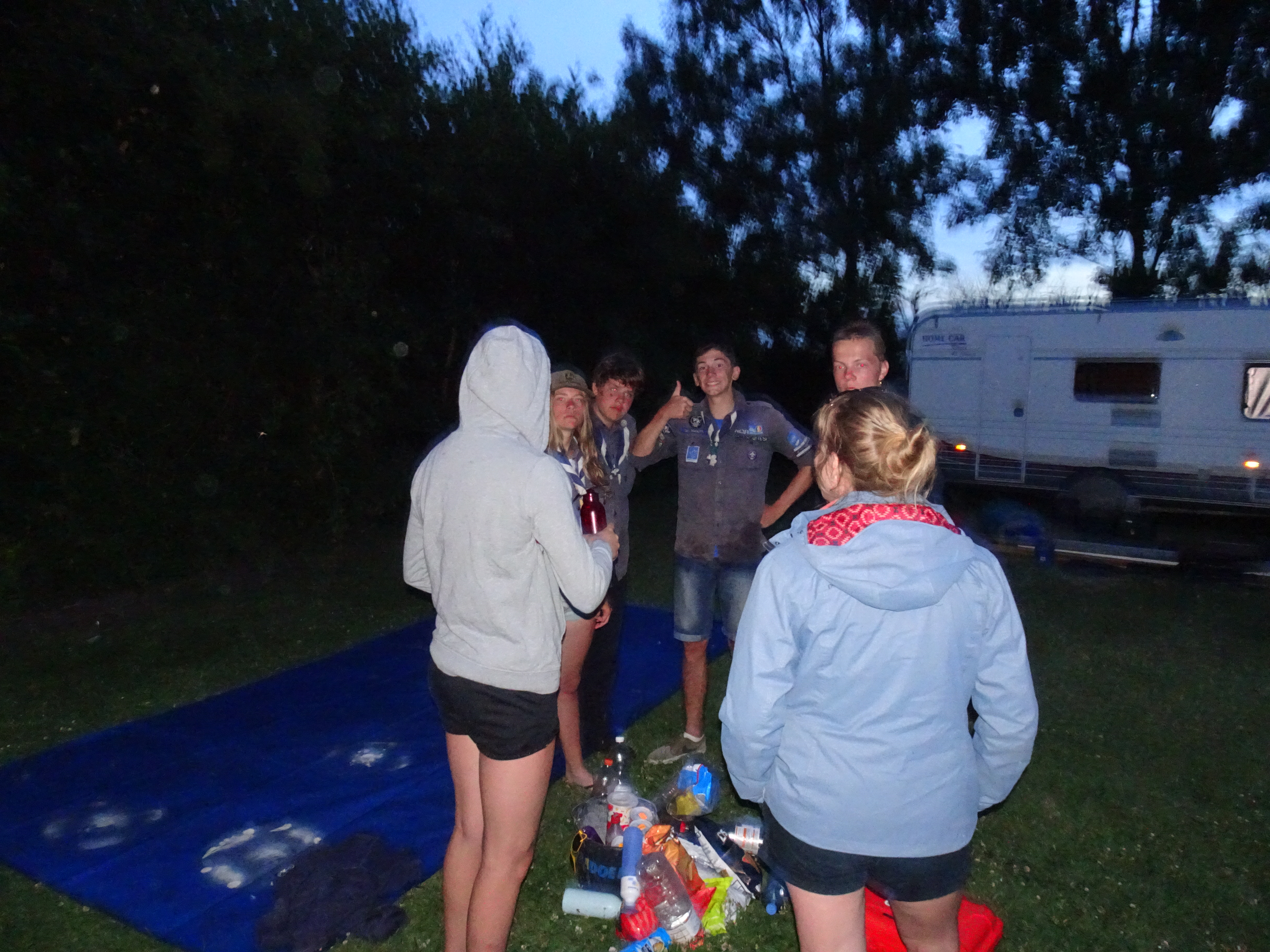 De badgewerking ging voort in de namiddag. We hebben geleerd om te seinen met vlaggen, op een vlot te peddelen, enz. S’avonds begon onze “12 uur kampvuur”. Dit hield in dat het kampvuur 12 uur moest aanblijven. S’nachts bleven er in shiften telkens 2 aspiranten aan het vuur om ervoor te zorgen dat het aan bleef. Bij elke shift probeerde een leider om het vuur te doven. Het was onze taak om het vuur te bewaken.